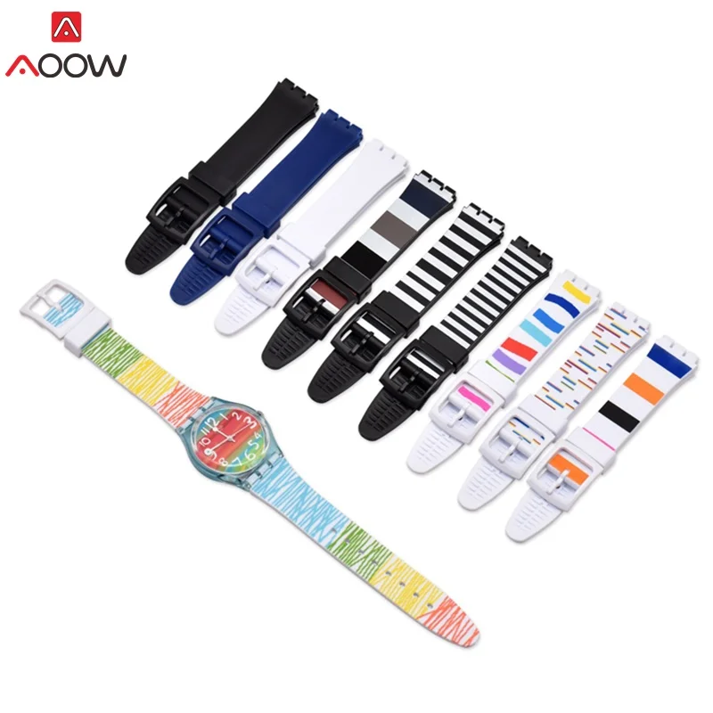 Cheap Price for AOOW Watch accessories for Swatch Strap Silicone Waterproof Watchband 16mm 17mm 19mm Watch Replacem