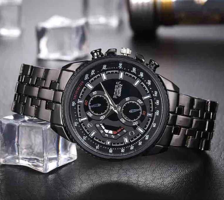 Men Black Watches Luxury Full Steel Watch Masculino Relogio Men's Sports Business Erkek Kol Saati Dress Wristwatch Chronograph