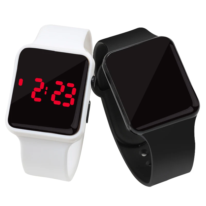2017 new hot Square Mirror Face Silicone Band Digital Watch Red LED Watches Metal frame WristWatch Sport Clock Hours 4colour